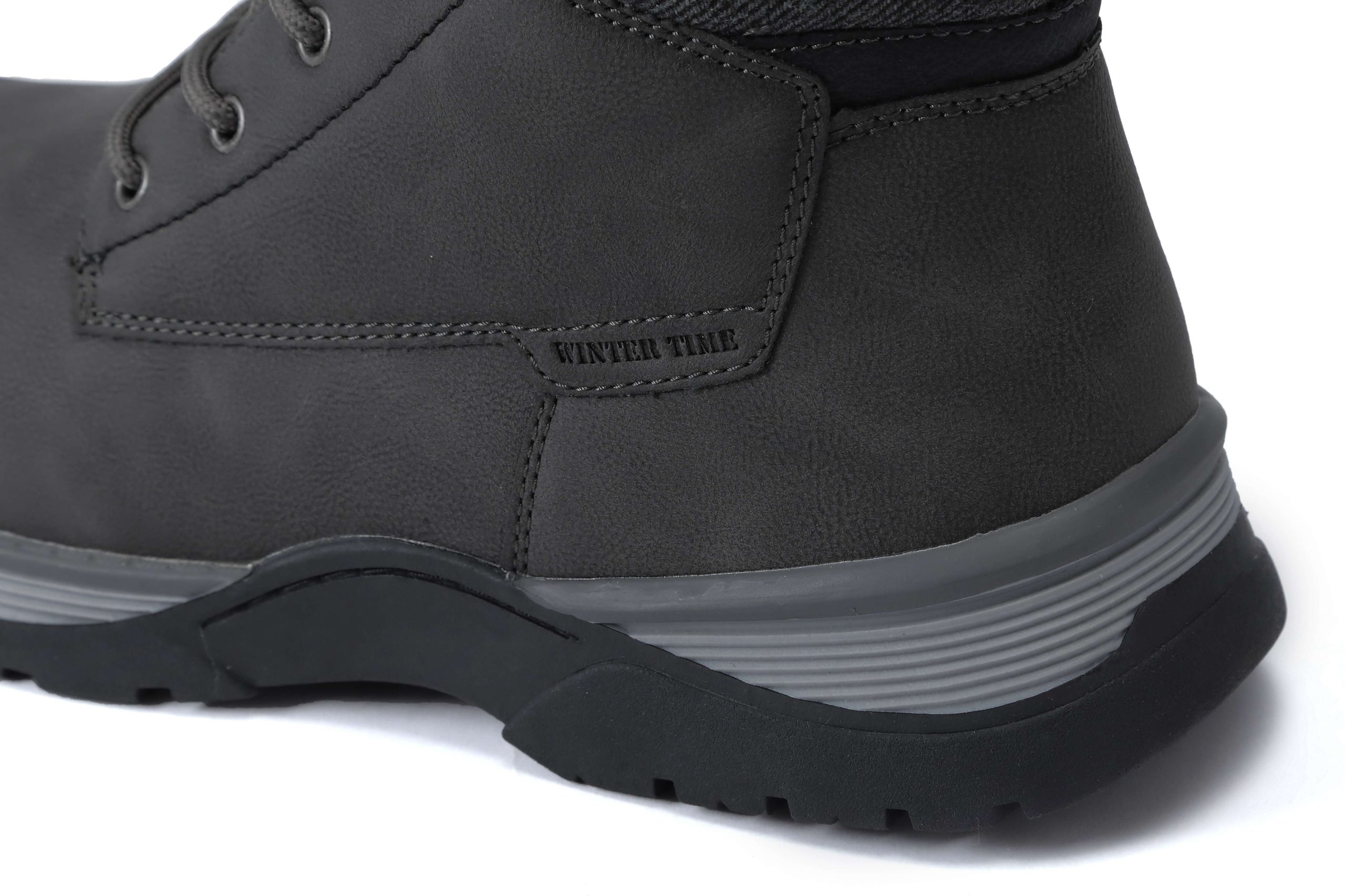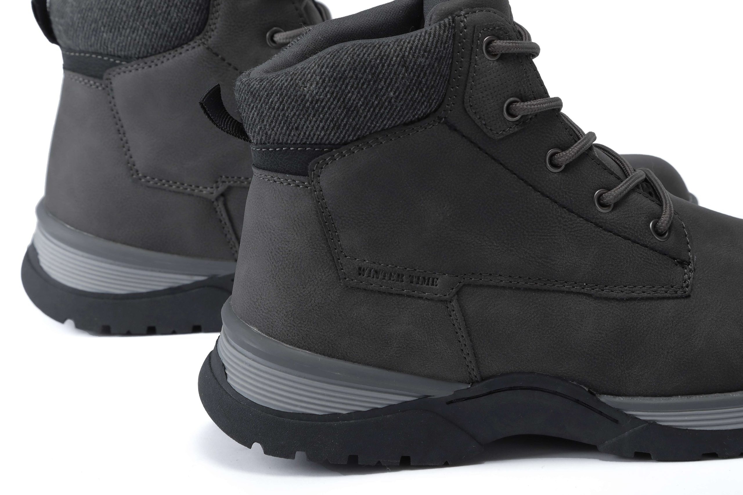 • All-Day Comfort and Style: Men’s winter boots with a PU and textile upper and a cozy textile lining. These boots provide warmth and style for winter wear and come in two classic colors, charcoal grey and honey, in sizes 39-46.