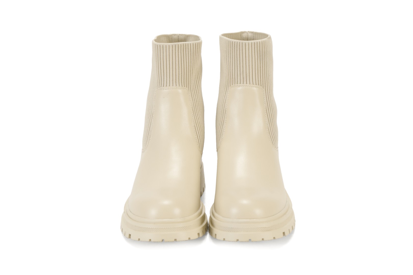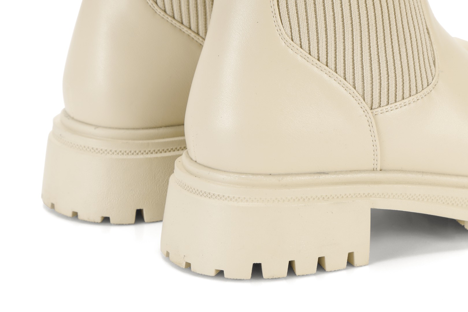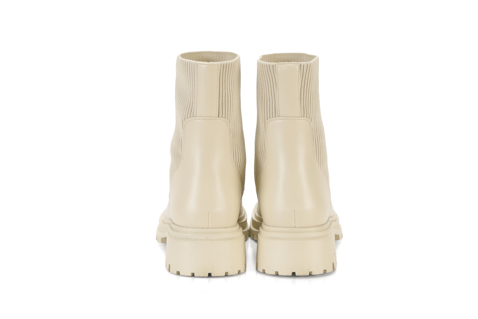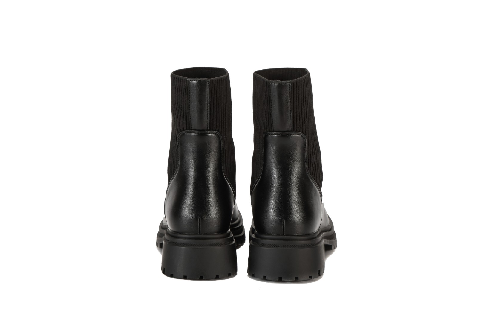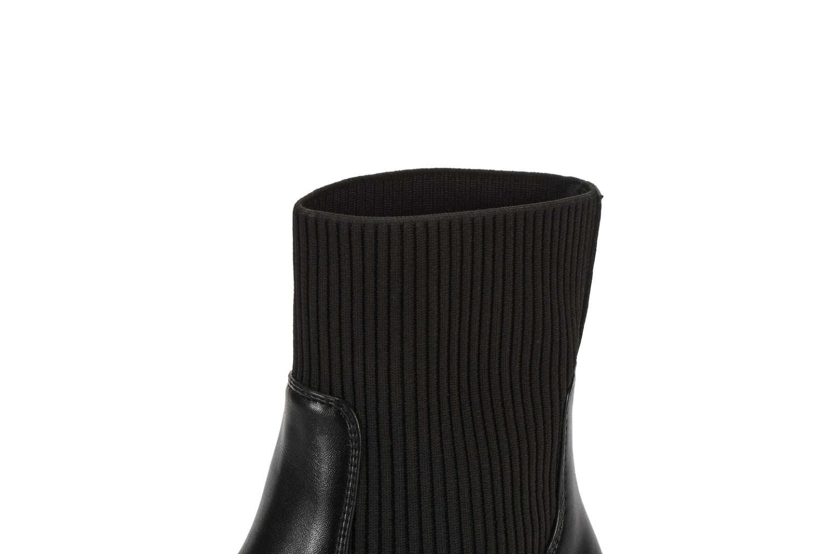 Step out in style and comfort with these Ladies' Knit-Collar Winter Boots. This model features a modern sock-boot aesthetic, combining a durable PU lower section with a flexible ribbed textile collar that hugs the ankle for a snug, cozy fit.
