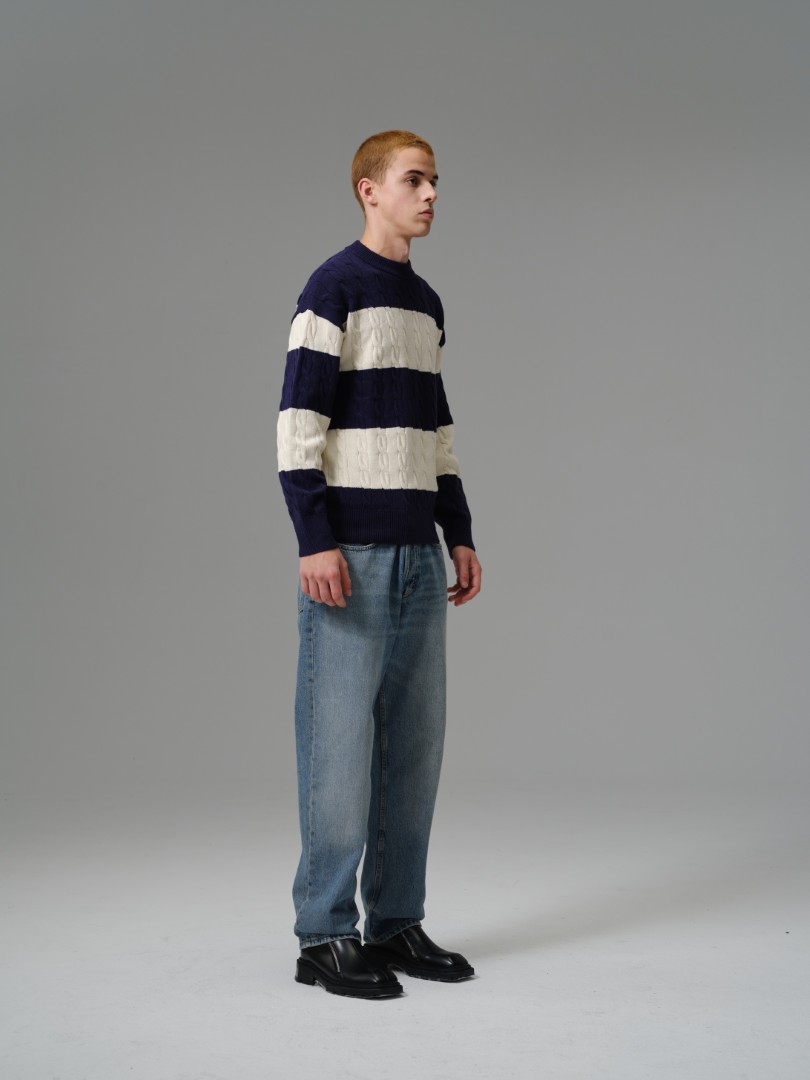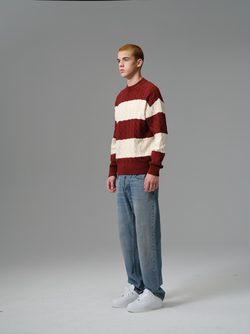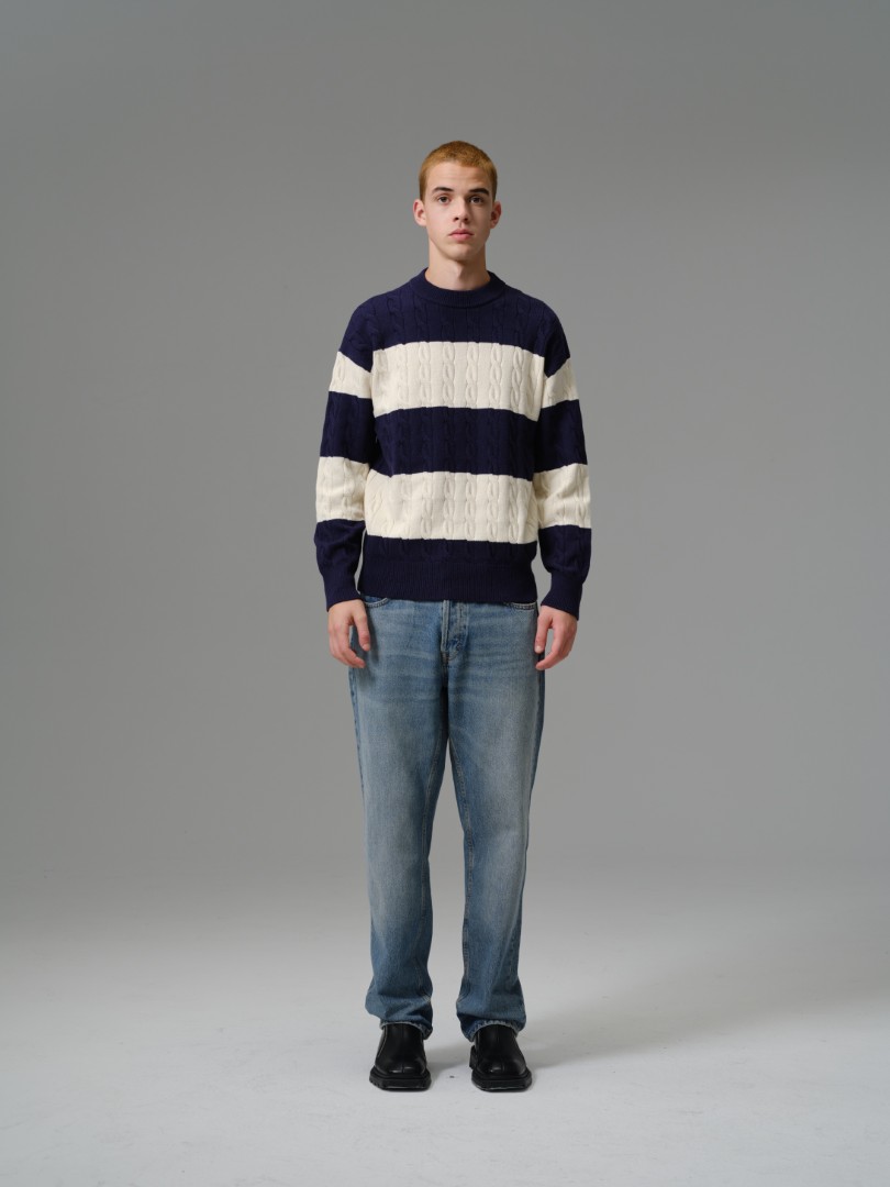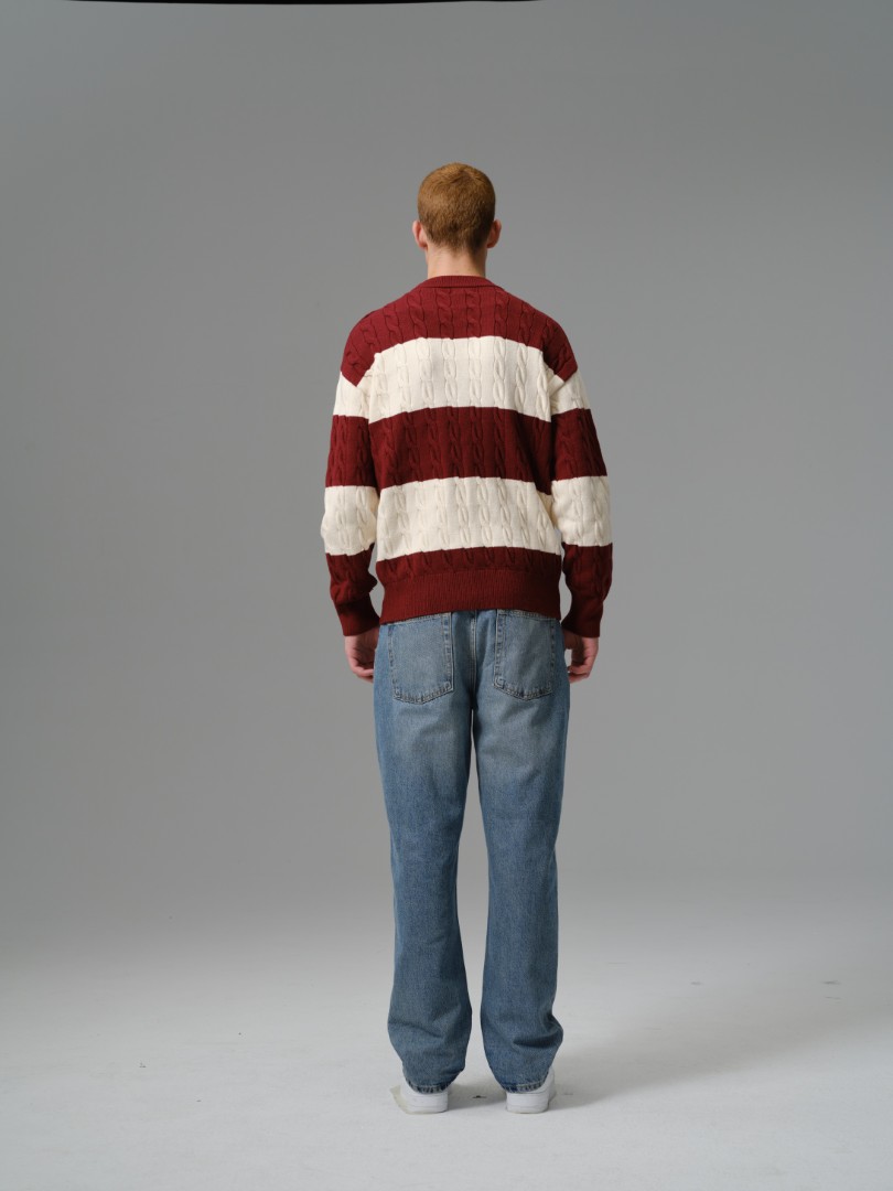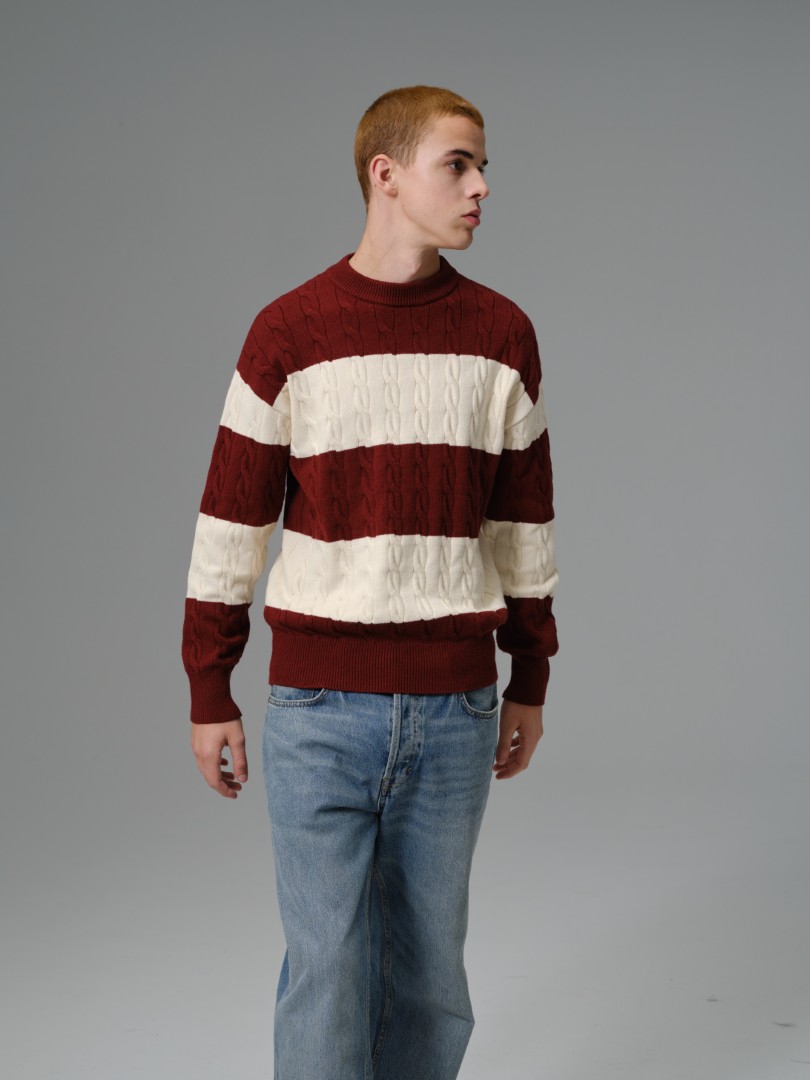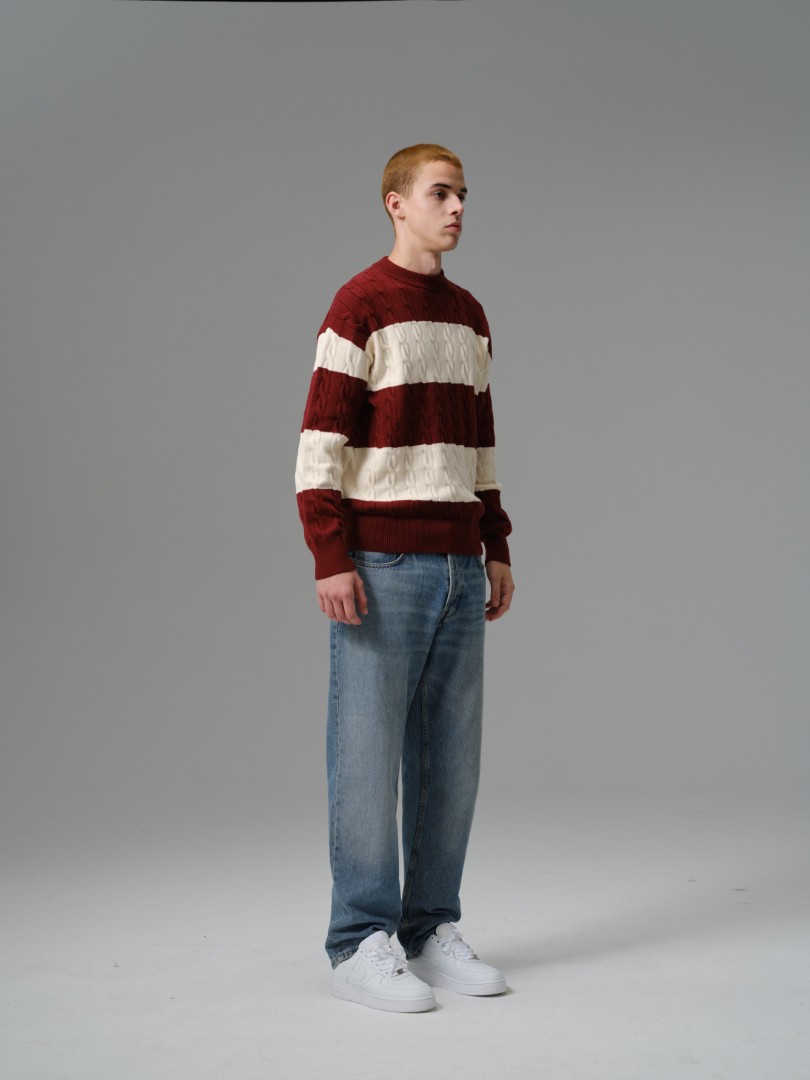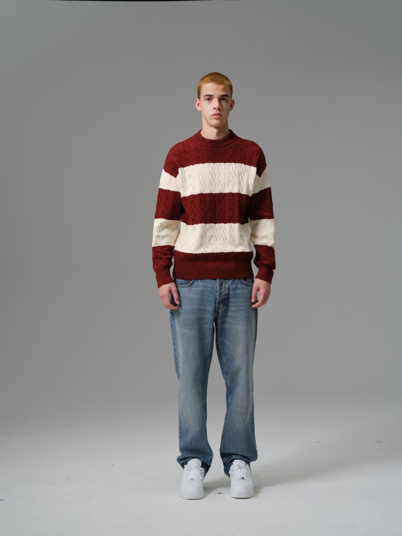 Colours: Navy / Red Material Blend: 40% Viscose 28% Polyester 22% Nylon 10% Wool Sizes: XS – XL Product Description A classic and versatile sweater featuring a soft, blended composition designed for warmth and long-lasting comfort. This Round Neck sweater uses a mixed yarn of Viscose, Polyester, Nylon, and 10% Wool to achieve a balance of a gentle hand-feel and durable resilience. It is an excellent layering piece for the autumn and winter months, providing casual elegance and reliable insulation.