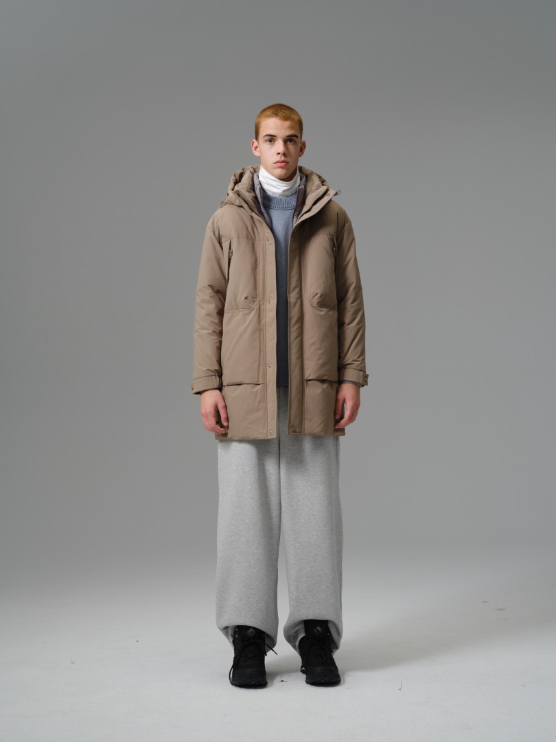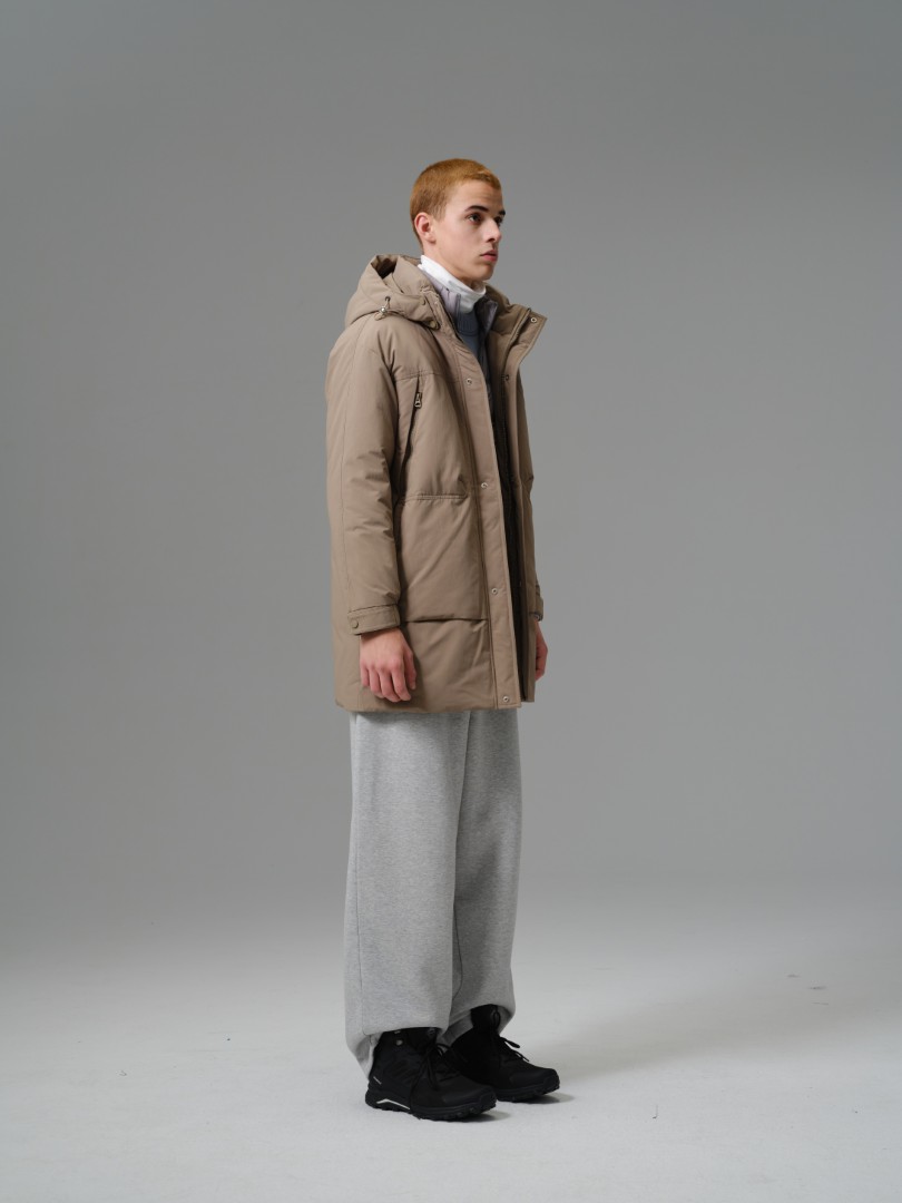 A high-grade, cold-weather essential offering maximum warmth and dependable performance. This parka is insulated with a superior 90% Down and 10% Feather blend, ensuring lightweight yet highly efficient thermal retention. The outer shell is made from durable 100% polyester, providing a clean look and protection against wind and cold. With its extended coverage and high-loft fill, this coat is designed for enduring the harshest winter conditions in comfort.