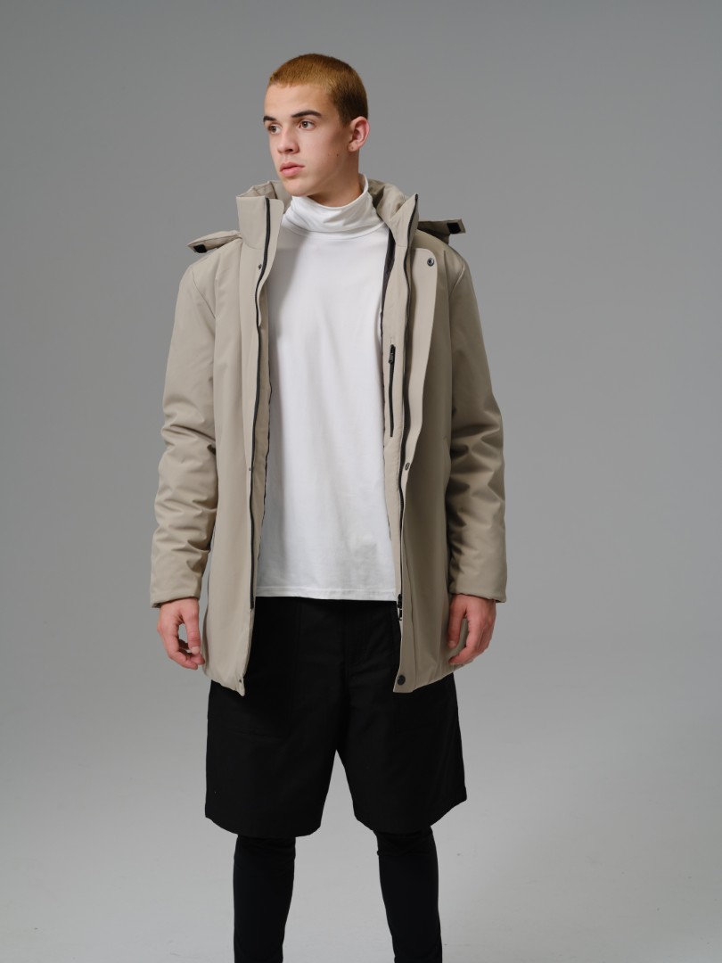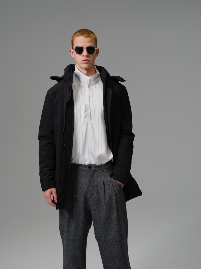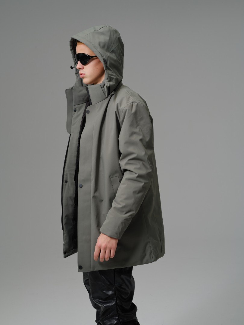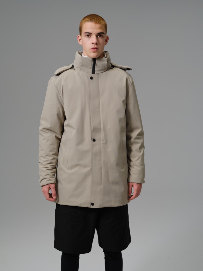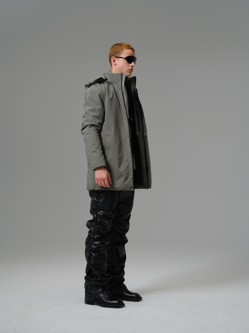 A contemporary longline parka designed for maximum coverage and a sleek, minimalist aesthetic. Built with a smooth, technical 100% polyester shell and full polyester insulation, this coat offers superb thermal warmth while its longer cut provides enhanced protection against wind and cold.
